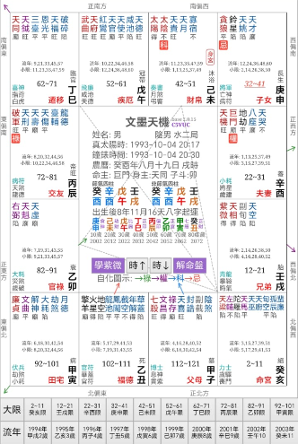 - 以出生月 + 出生時辰(逆數)來定命宮,再安星。