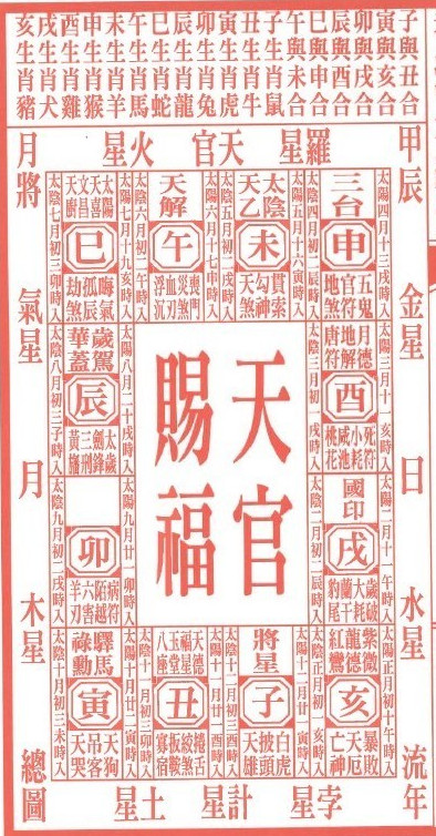 二是先計算出出生命宮和流年小限宮位,然後再對照「天官賜福」圖內該宮位內神煞為該年的生肖運程