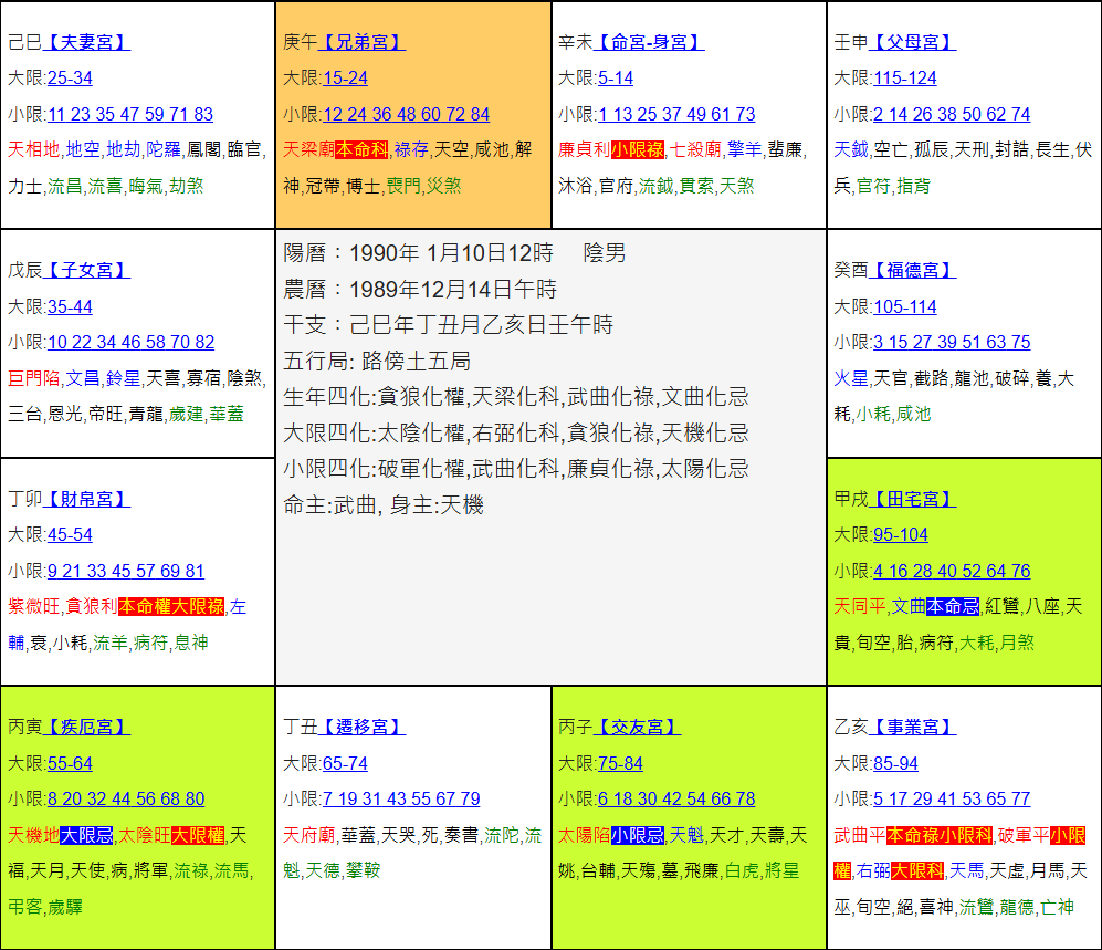 推算斗數流年運程是以走到該年宮位為命宮,以此命作例。