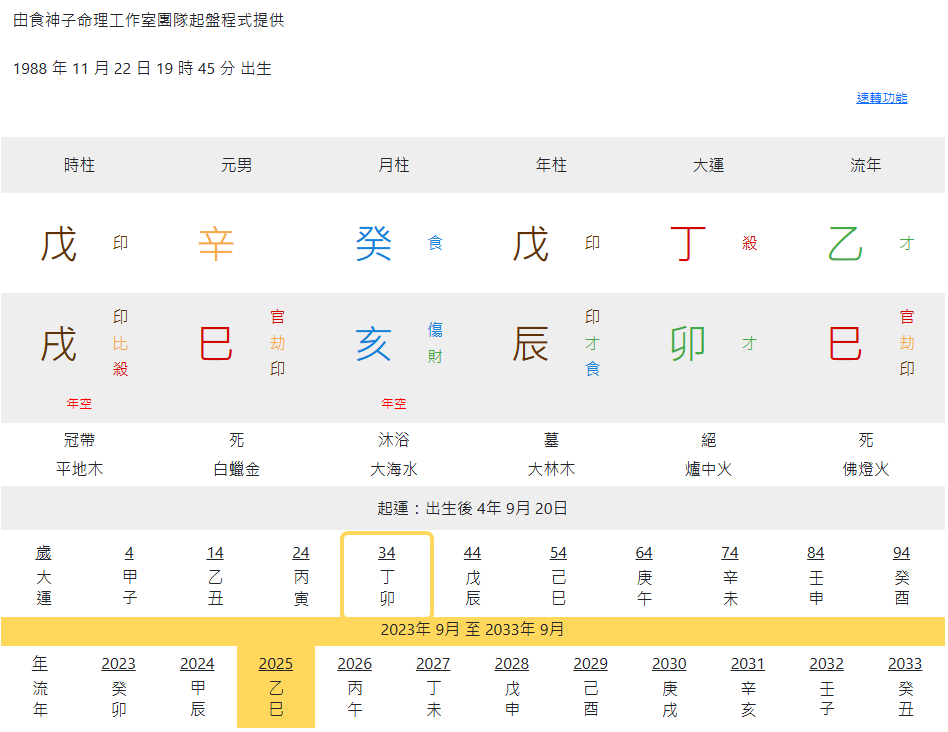 推算八字流年運程是以該年年柱拼入原局四柱及大運作出推算,對擁有不同八字的人來說,共同面對的流年如2025年為乙巳年會有截然不同的境況出現。